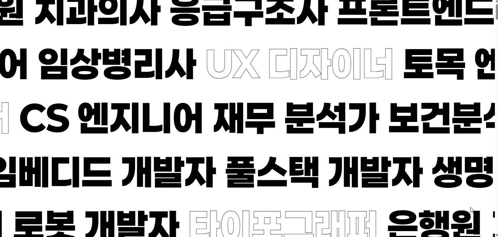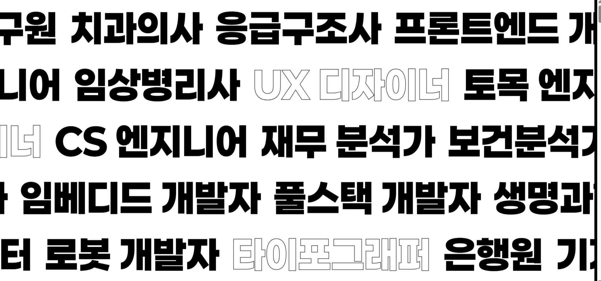 제가 참여했던 잡생각 프로젝트에서는 HeroSection에 스크롤에 따른 타이포그래피 애니메이션을 넣게 되었습니다. 스크롤에 따라 폰트가 점점 커지는 모션에서 자연스럽게 다음 섹션의 black 화면으로 넘어갈 수 있도록 구현했었는데요.